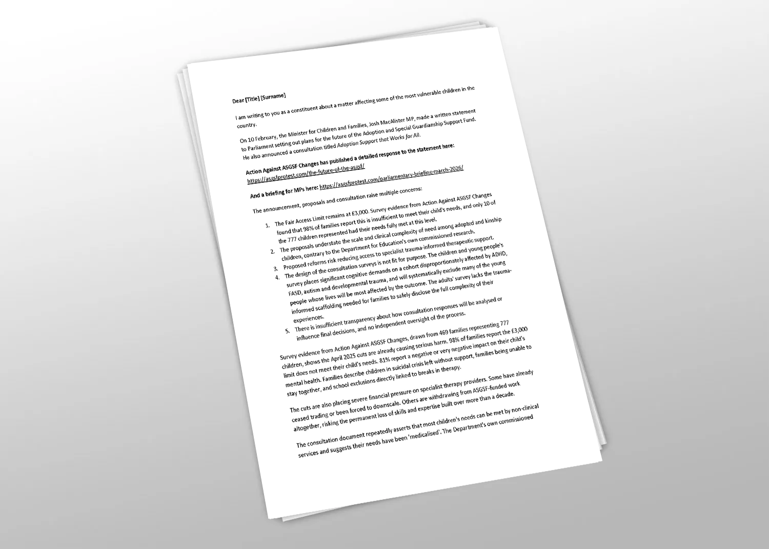 I would be grateful if you would press the Minister for Children and Families and the Treasury to reverse the April 2025 cuts to the Fair Access Limit, matched funding and assessment funding. I would also ask you to call on the Government to pause the consultation until both surveys have been independently reviewed and rewritten to ensure they are trauma-informed and accessible to all those affected, and until there is full transparency about how responses will be analysed and what weight they will carry in final decisions.